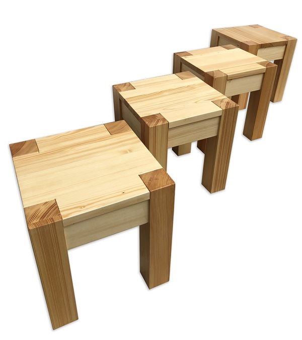 Stoli iz masivnega smrekovega lesa brez naslonjala. Stol je trden in kvalitetno izdelan. Primerni za sedenje, lahko pa se jih uporabi tudi za najrazlicnejše podstavke, kot so stojala za rože ali pa kot dekorativna mizica. Lakirani so dvakrat z brezbarvnim natur lakom.
