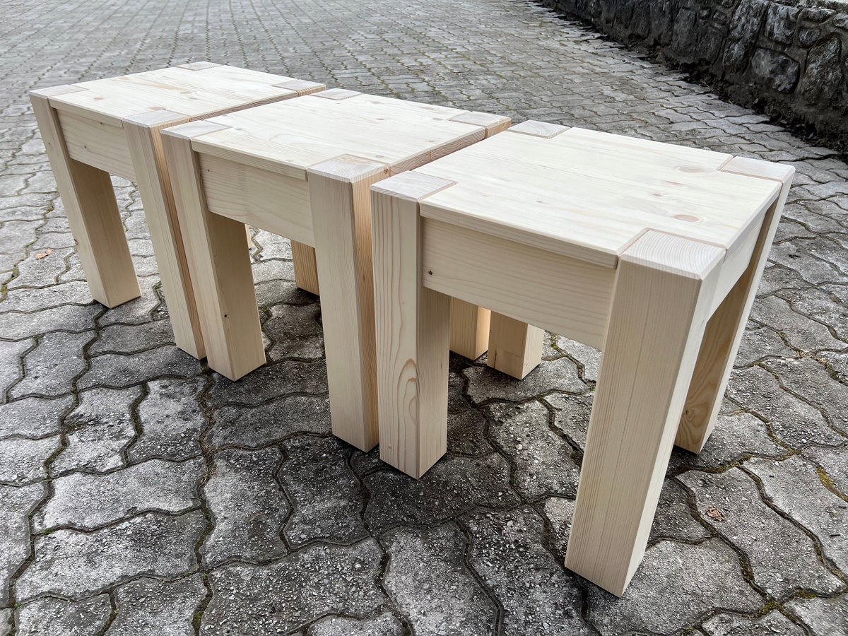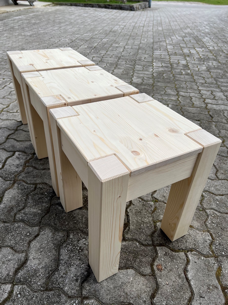 Stoli iz masivnega smrekovega lesa brez naslonjala